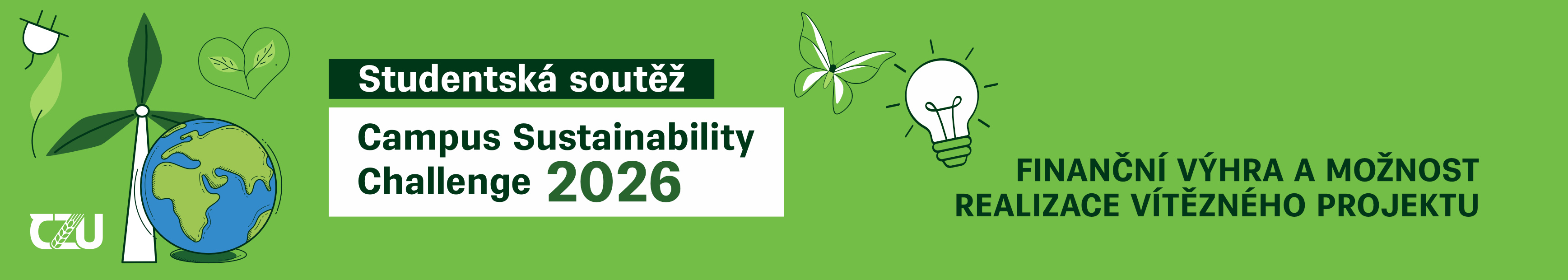 Oddělení rozvoje a udržitelnosti Rektorátu ČZU vyhlašuje nový ročník studentské soutěže Campus Sustainability Challenge 2026! Zapojte se do programu, který už od roku 2018 přináší do kampusu desítky inovativních, ekologických a společensky přínosných studentských projektů.