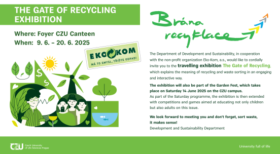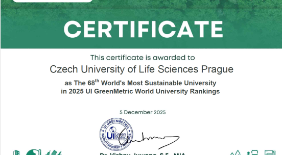 CZU has repeatedly been the best-rated university in the Czech Republic in terms of sustainability and social responsibility. In this year's international UI Green Metric University Ranking, which assesses the sustainability of universities, CZU ranked 62nd out of a total of 956 universities